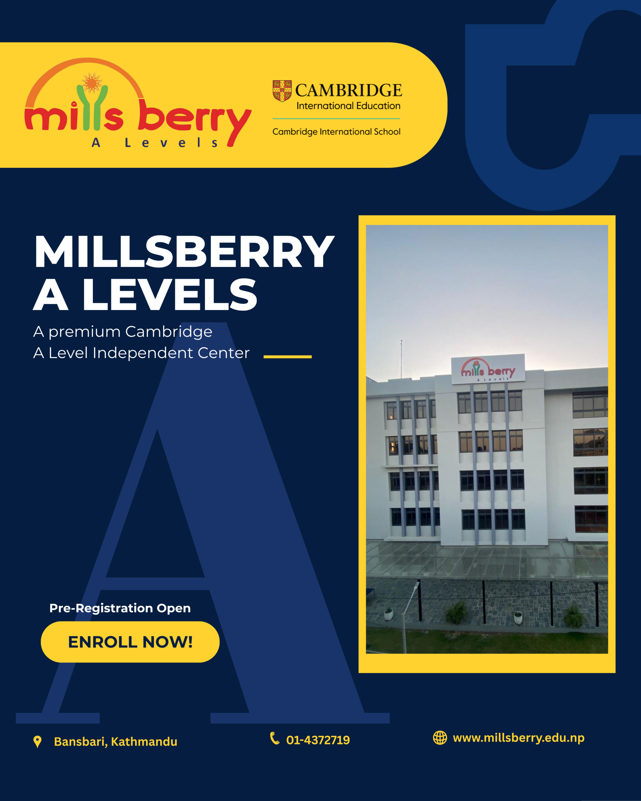 Millsberry International College proudly holds the status of a registered Associate School for the Cambridge International Examination (CIE), under the auspices of Cambridge University. Cambridge University is renowned for providing globally recognized courses, examinations, and qualifications to students worldwide. The Advanced Level (A Level) qualification, often referred to as the ‘Gold Standard,’ is designed for academically inclined students and is esteemed for its rigorous curriculum that prepares them for higher education, acting as a universal springboard.